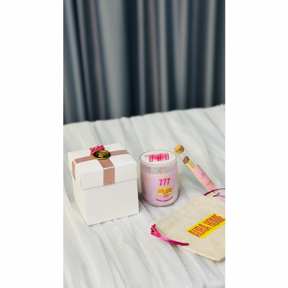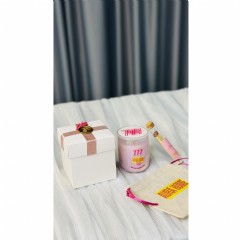 * Beyaz hediye kutusunda, kese içinde 335gr pleksi kapaklı cam bardak soya mum ve dekoratif cam şişede kibrit gönderilecektir.
